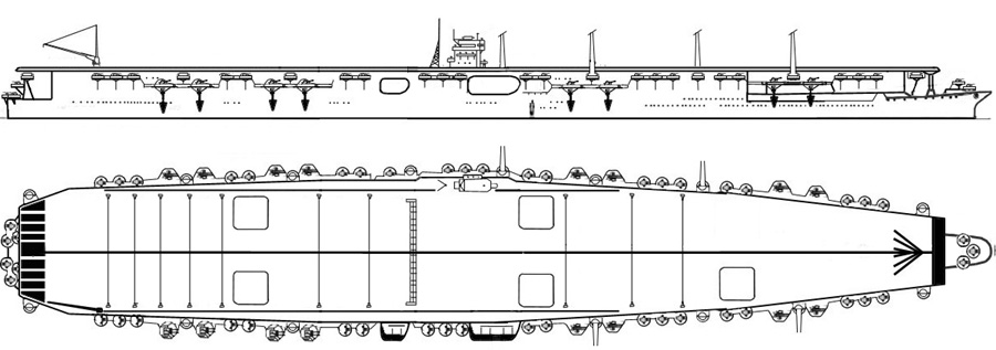 hull was quickly dismissed. A warship (especially a flat decked carrier of her size) could not be